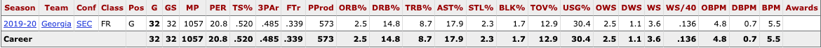 Kobe famously went straight from high school to the NBA, but comparing Peterson’s and Ant’s freshman stat lines is instructive. Looking at Peterson’s stat line, we can see that he pops in nearly all of the statistical signals that are most indicative of a draft prospect’s future NBA value. Peterson isn’t quite the athlete that Ant was as a prospect, and the fact that Ant was almost half a year younger for his freshman season matters more than people think, but even so Peterson’s college production has been clearly way ahead of Ant’s. Peterson doesn’t have the same level of shot selection and feel for the game questions marks that Edwards had as a prospect, which contributed to the fact that Ant’s impact metrics were more good than elite.2 If one were to nitpick Peterson, there are only two potential caveats to look into.